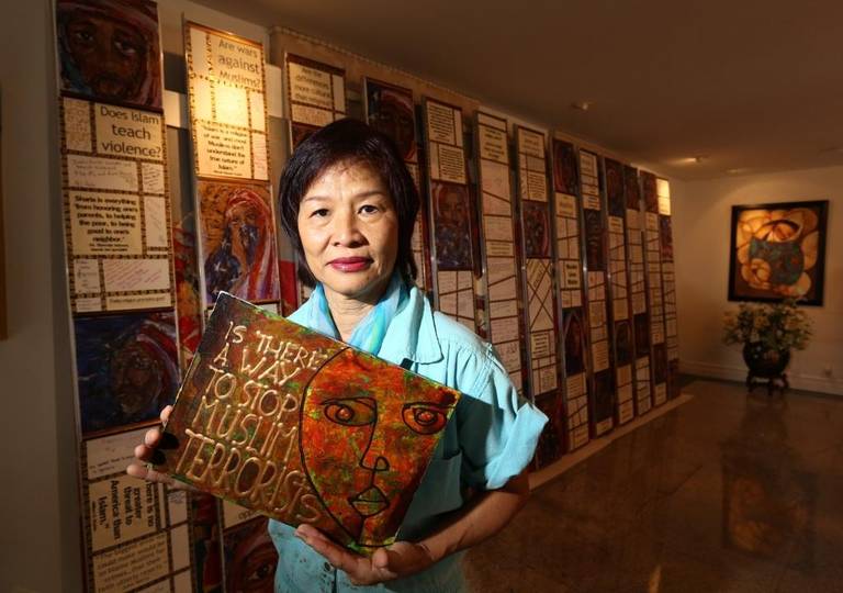 Nearly 20 years in the making, Huong’s Peace Mural is the culmination of 30 years of searing memories that bring history to life and depicts the universal pain of war and hope for peace. In its entirety, the Peace Mural is over 800 feet in length and 8 feet tall, comprised of nearly 2000 paintings. The exhibition often includes a number of free-standing pieces from Huong’s private war/peace collection.